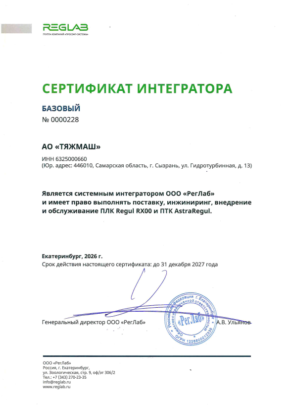 ООО «РегЛаб» - ведущий отечественный разработчик программируемых логических контроллеров REGUL RX00 и программно-технического комплекса AstraRegul. Является аккредитованной IT-компанией, представляет передовые решения для построения АСУ ТП любого масштаба промышленных предприятий. Компания входит в состав группы компаний ООО «Прософт-Системы». Научно-техническая база, высококвалифицированный персонал и практический опыт реализации АСУ ТП позволяют ООО «РегЛаб» создавать продукты с уникальными техническими характеристиками, исходя из потребностей Заказчиков.